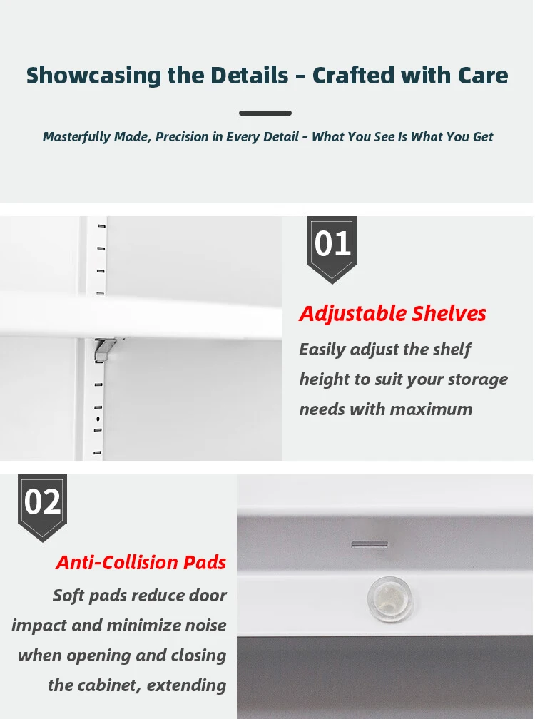 La Armario archivador de acero con cierre y estantes ajustables por el Pulage & Wanrui es una solución de almacenamiento robusta y adaptable diseñada para diversos entornos, incluidos oficinas, garajes y talleres. Fabricado con materiales de alta calidad acero Laminado en Frío (SPCC) con un acabado liso en pintura en polvo , este armario ofrece una durabilidad excepcional, resistencia a la corrosión y una estética profesional. Cuenta con estanterías Ajustables , a sistema de cerradura central , y un diseño eficiente en el espacio , proporciona almacenamiento seguro y flexible para documentos, herramientas y equipos. Ideal para entornos profesionales e industriales, este archivador combina funcionalidad con opciones de personalización para satisfacer diversas necesidades organizativas.