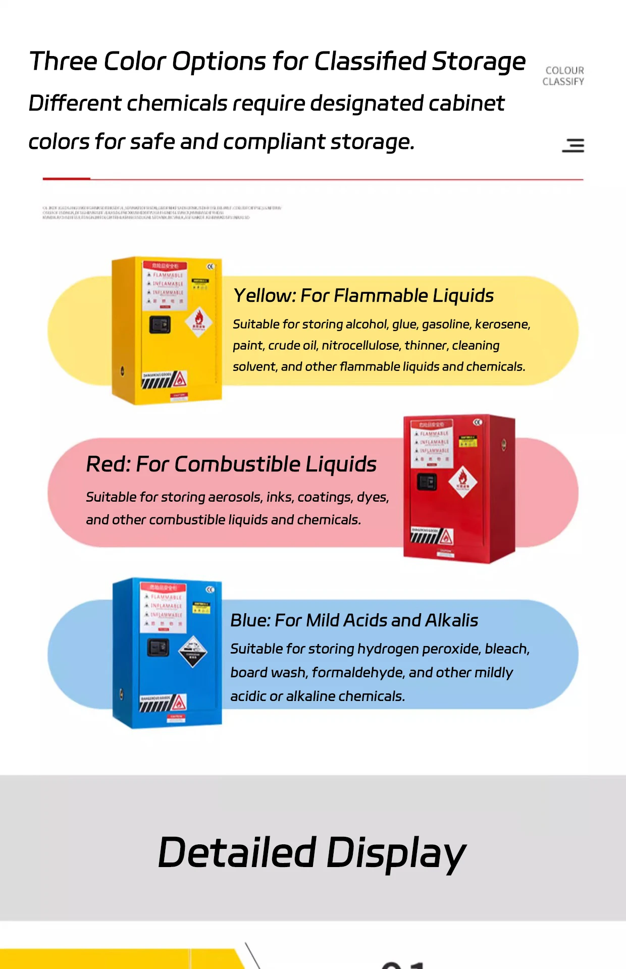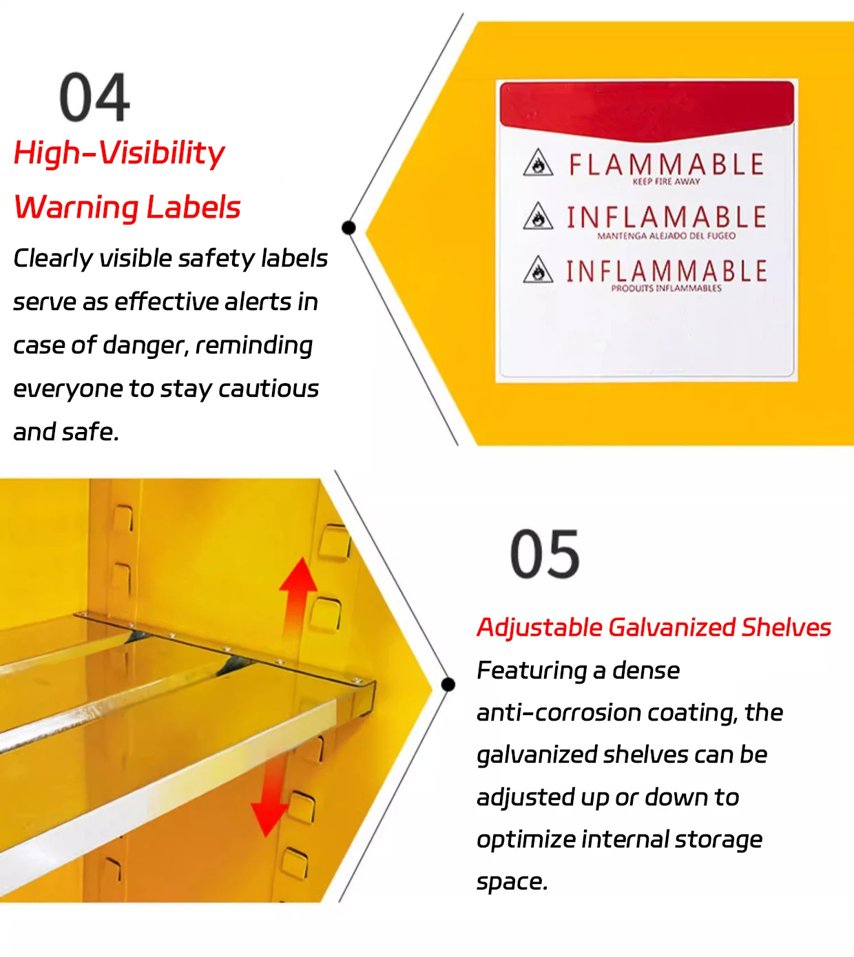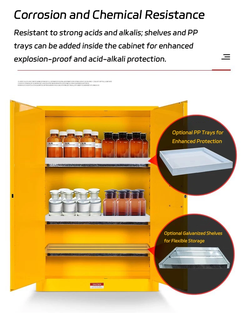 Aplicaciones : Ideal para entornos de laboratorio, escolares e industriales que requieren almacenamiento seguro de materiales peligrosos.