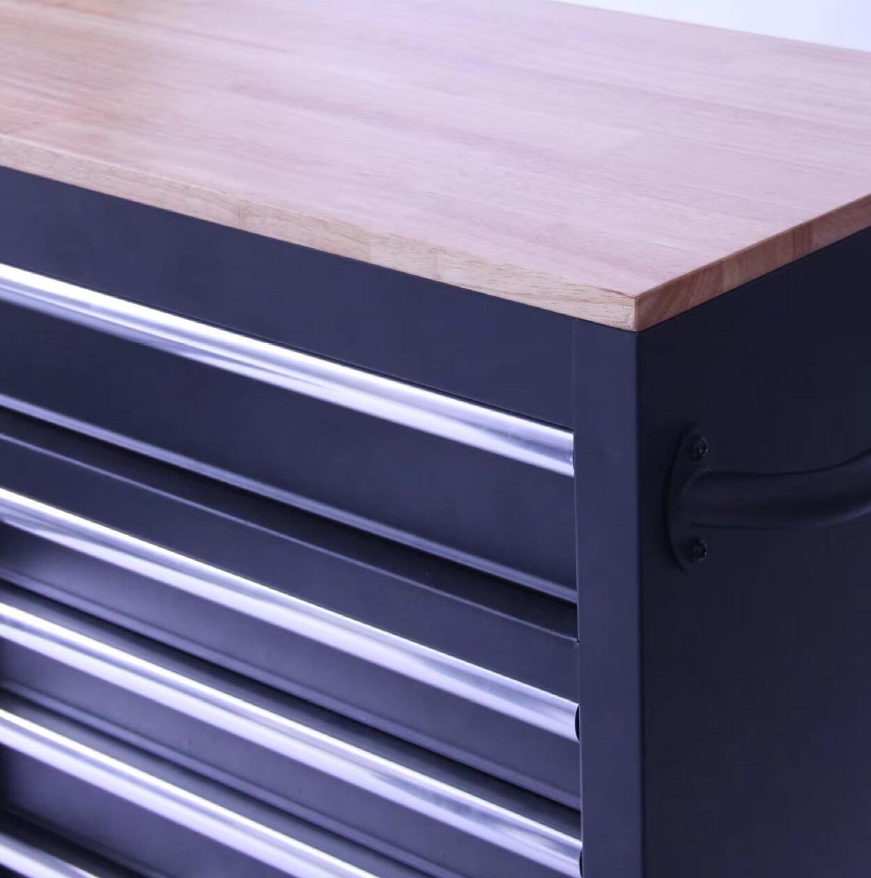 Fabricado con precisión, el gabinete cuenta con ocho cajones espaciosos, que ofrecen amplio almacenamiento para herramientas de todos los tamaños, desde instrumentos de precisión hasta equipos pesados. La tapa de madera maciza sirve como una superficie de trabajo resistente, ideal para montajes o reparaciones, mientras que la construcción robusta garantiza durabilidad bajo uso intensivo. Ya sea en un garaje profesional, taller doméstico o entorno industrial, este gabinete ofrece eficiencia organizada con un estilo elegante y contemporáneo.