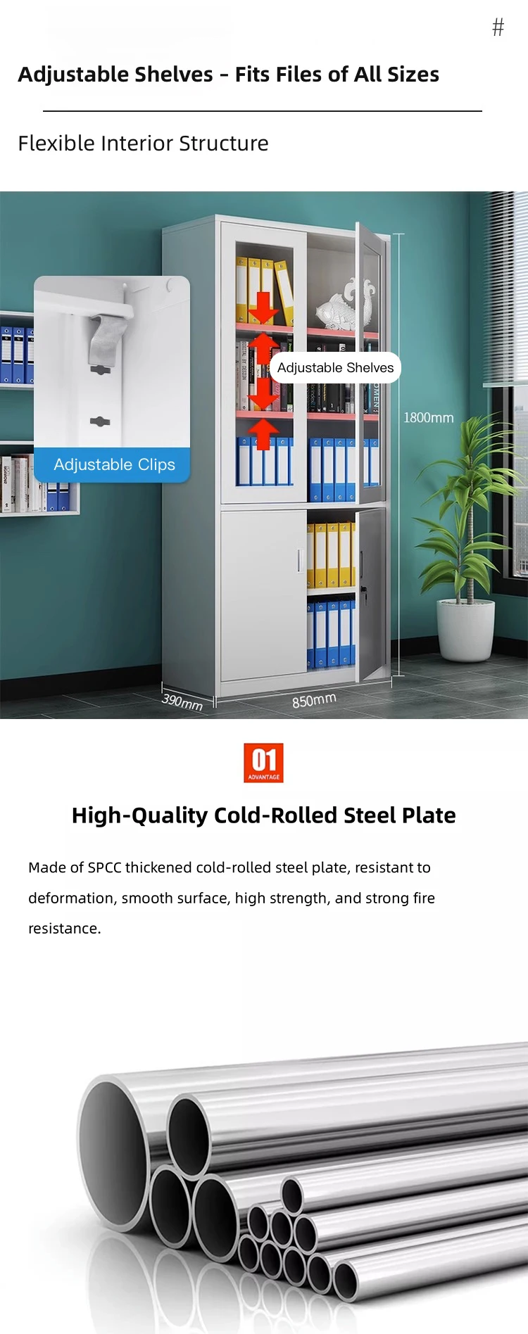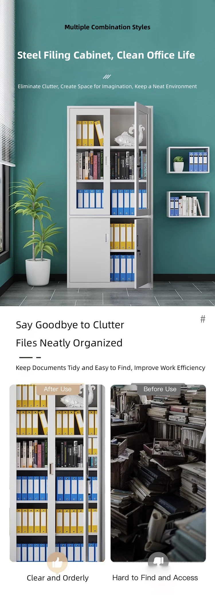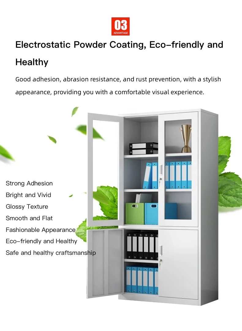 Di کابینەی فایلکردنی فولادی هەڵگری درێژەی شیشەی دوو کوپک، ٣ قاپ، ١ بەشی لاکانەوە دەبەسترێت، و درێژەی مێتالی دوو کوپکی خوارەوە ئەم بەرهەمە یەکێکە لە یەکەکانی پاراستن کە بەردەوامی و شیکییەتی زۆری هەیە و بۆ داواکارییەکانی دەرهەمە کارییە نوێکان، دەرهەمە خانووبەرەکان، و هەڵوێستە پیشەیییەکان دەگرێتەوە. لە فولادی باش دروستکراوە، ئەم کابینەیە هاوبەشی بەدەستسەگماوی، ئاسایش، و شێوەیەکی نوێ دەکات بۆ پێشکەشکردنی چارەسەرێکی کارەبایی بۆ دۆکیومێنتەکان، کاغەزات، و ماتەریاڵە سروشتییەکان. ئەم کابینەیە دروپەی دووکاتی شفافی تەمپەرەدراوی لەسەر هەیە بۆ ئاسانی دیاریکردن، ٣ قاپی گەورە بۆ وسایلی بچوک، بەشێکی لاکانەوە بۆ ئاسایشی زیاتر، و دروپەی دووکاتی مەتالی لەخوارەوە بۆ پاراستنی زیاتر.